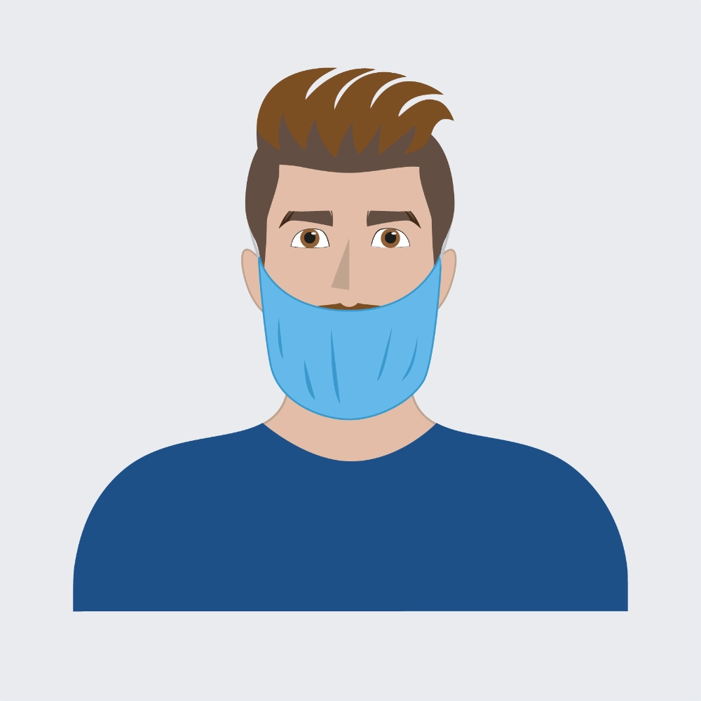 Copribarba monouso Ajrtouch® Beard Cover realizzato in Tessuto Polipropilene 12gr/m2, progettato per coprire e contenere la barba durante attività in cui è necessario mantenere elevati standard di igiene di colore blu