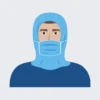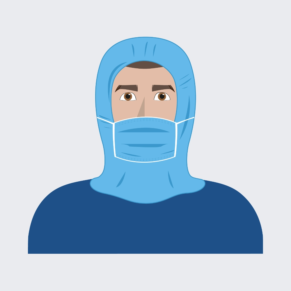 Copricapo monouso con mascherina Ajrtouch® Hood Mask realizzata in Tessuto Polipropilene 20gr/m2 coprente e traspirante di colore blu