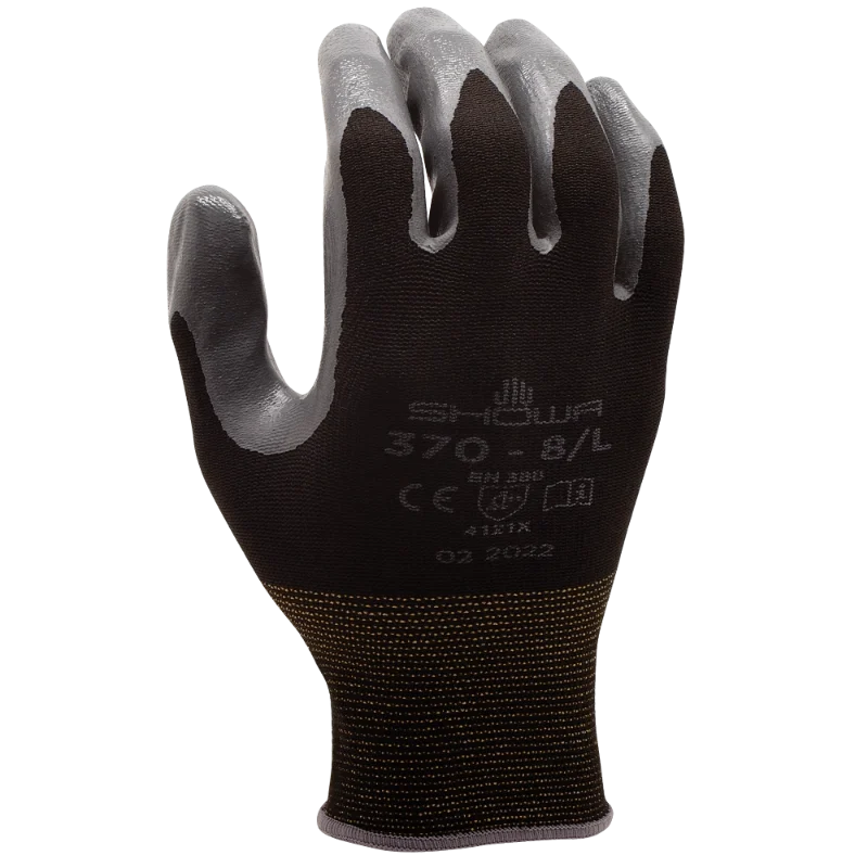 Guanti SHOWA® 370 BLACK da lavoro in filo continuo Nylon spalmato alle dita in nitrile nero