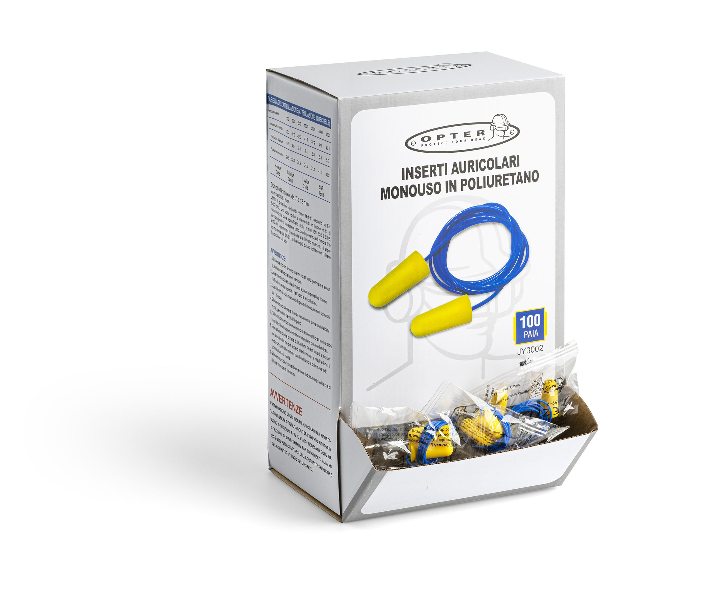 Gli inserti auricolari in schiuma di poliuretano OPTER sono dispositivi di protezione individuale dell’udito monouso, progettati per contribuire a ridurre l’esposizione dell’utilizzatore a livelli di rumore potenzialmente dannosi in ambienti di lavoro industriali e professionali. Realizzati in schiuma di poliuretano a lenta espansione, gli inserti si inseriscono nel condotto uditivo mediante compressione preventiva; una volta posizionati, si espandono progressivamente adattandosi alla conformazione dell’orecchio, garantendo una tenuta efficace e confortevole. Il materiale morbido contribuisce a migliorare il comfort anche in caso di utilizzo prolungato. Gli inserti auricolari sono certificati secondo la norma EN 352-2:2002, che specifica i requisiti di sicurezza e le prestazioni per gli inserti auricolari assicurando una riduzione del rumore fino a 37 dB (SNR). Sono indicati per l’impiego in diversi contesti applicativi, quali industria manifatturiera, cantieri, logistica, officine e attività di manutenzione, dove sia richiesta una protezione uditiva immediata e affidabile. Confezione 200 paia.
