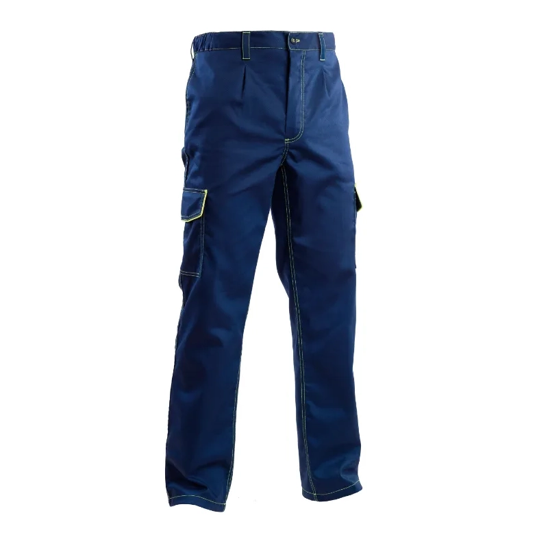 - Pantalone multiprotezione con cuciture a contrasto e piping sulle tasche colore giallo fluo