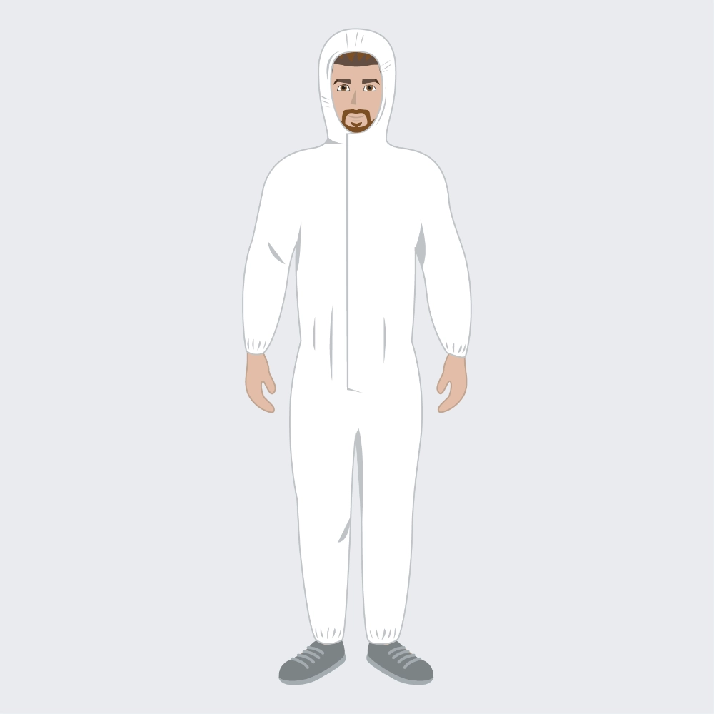 Tuta Ajrtouch® Shield di protezione chimica con cappuccio di colore bianco realizzata in Tessuto SMS traspirante